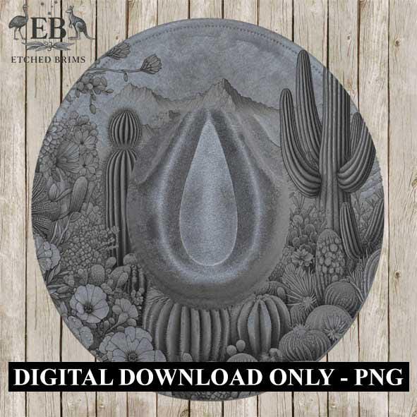 Cactus Desert Hat Design 2, Western Cactus Design, Faux Suede Wide Brim Hat with Laser Burned Brim, Boho Cowboy Style, Laser File EB284