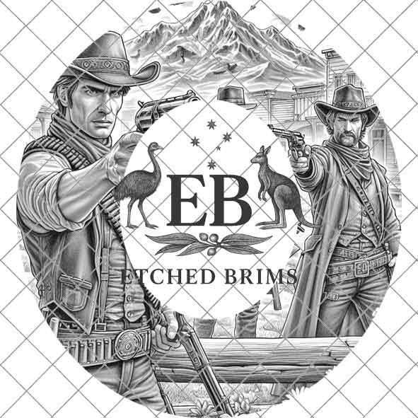 Gunslinger Cowboy 2 Hat Engraving, Western Brim Template, Digital Laser Design Wide Brim Faux Suede Hat, Boho,Laser Hat Burning File EB253