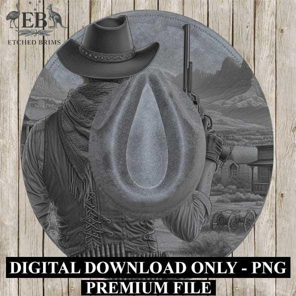 Gunslinger Cowboy 5 Hat Engraving, Western Brim Template, Digital Laser Design Wide Brim Faux Suede Hat, Boho,Laser Hat Burning File EB255