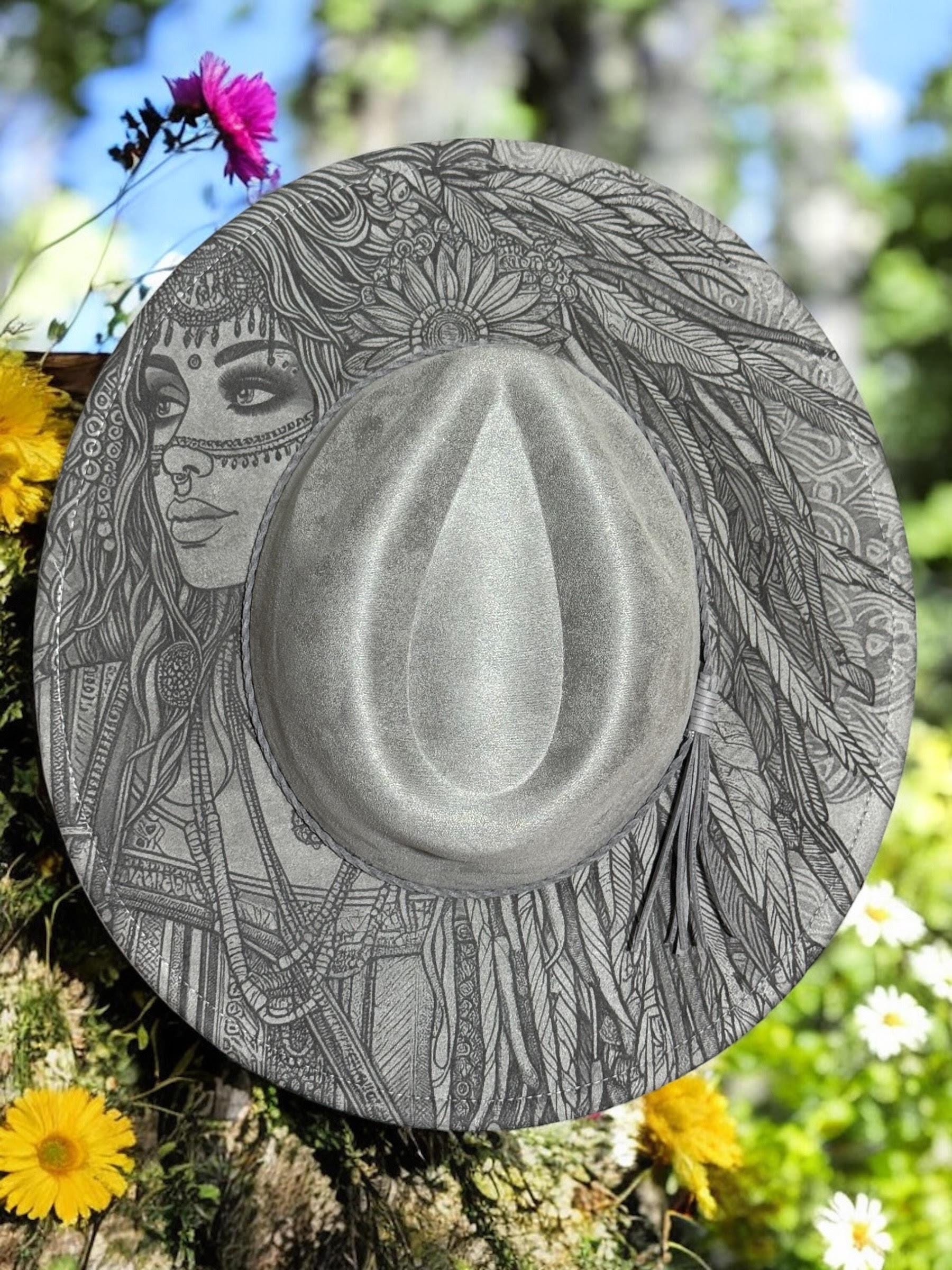 Your Choice of Engraved Hat from Any of My Designs. Engraved Wide Brim Hat, Vegan Suede Fedora Hat, Laser Engraved, Burned Fedora.