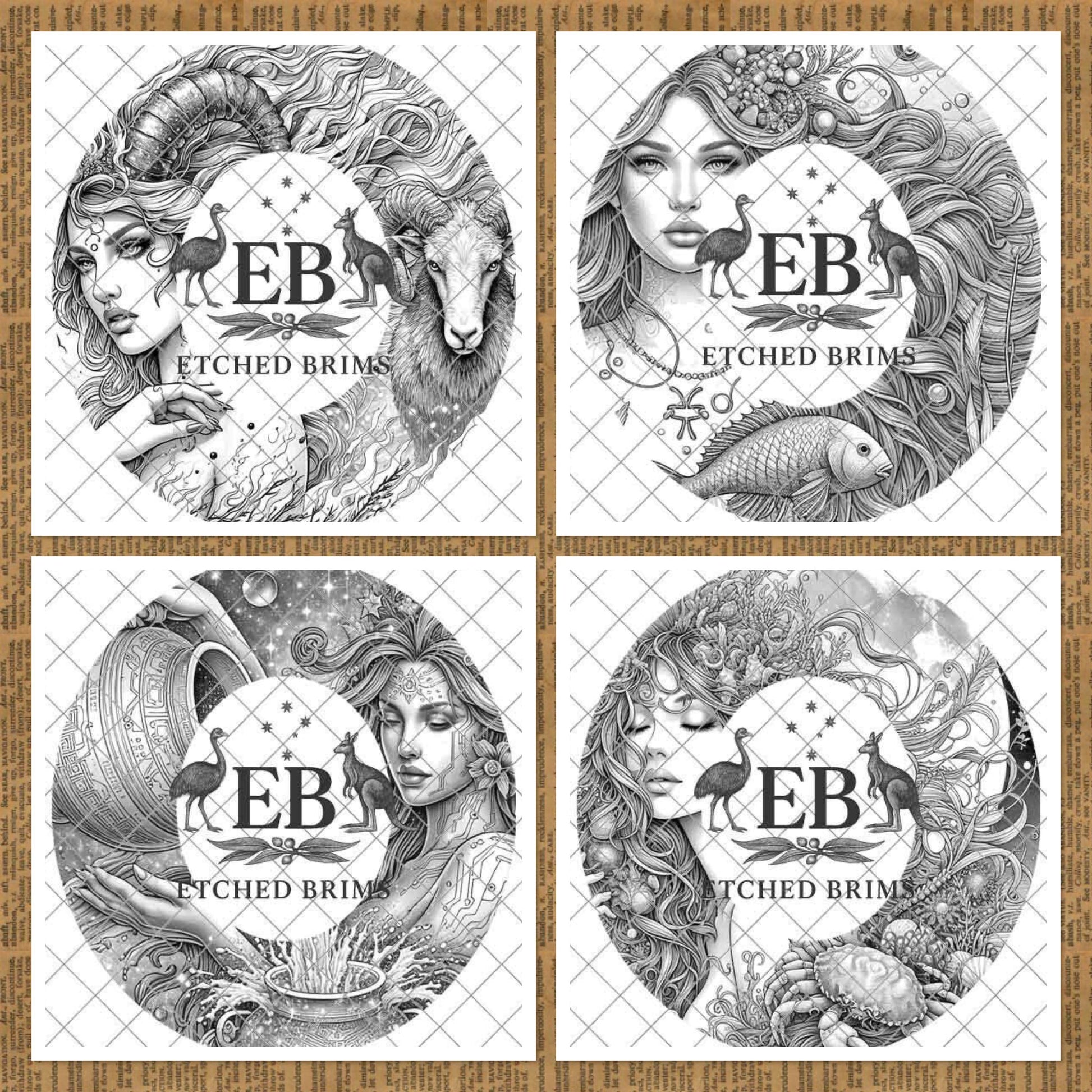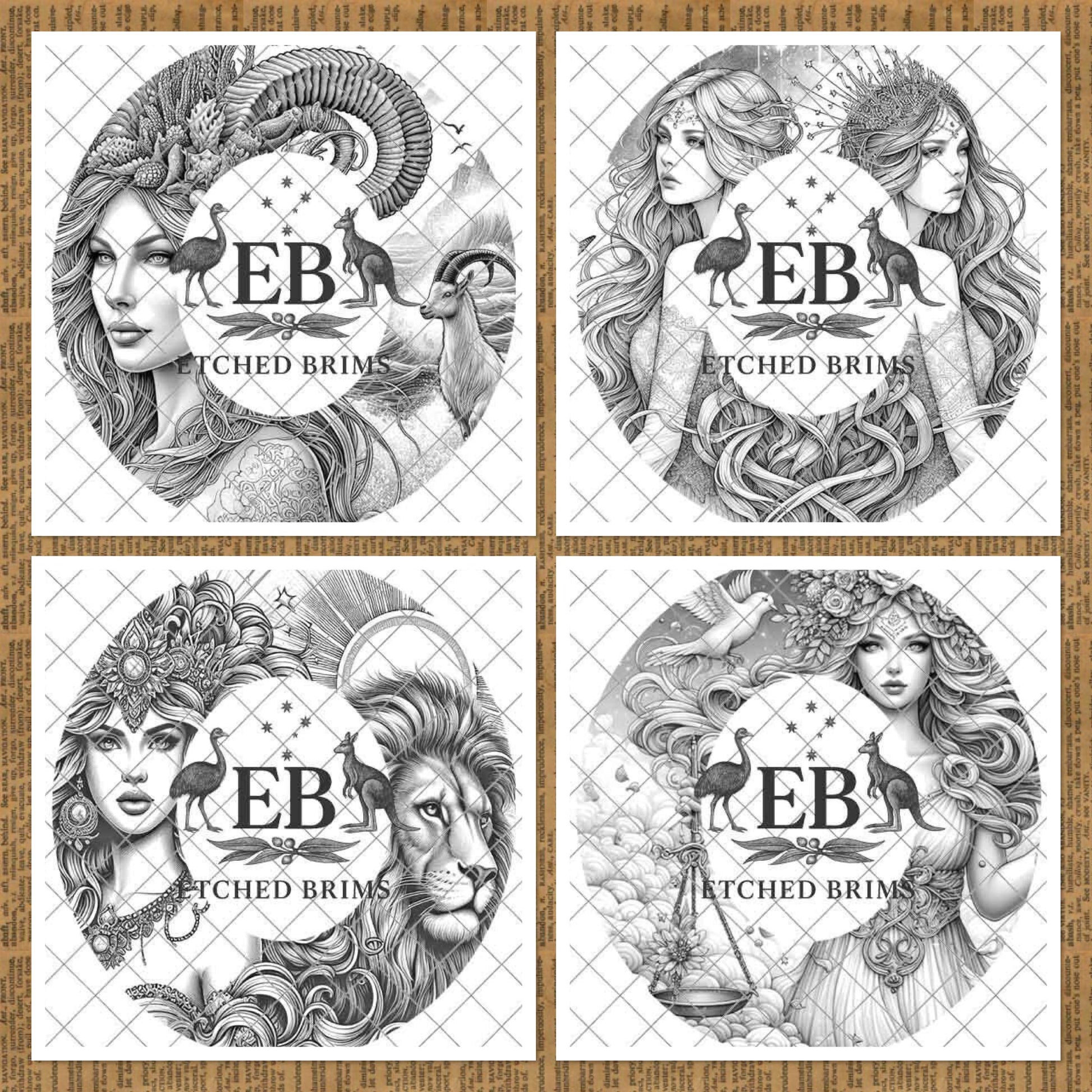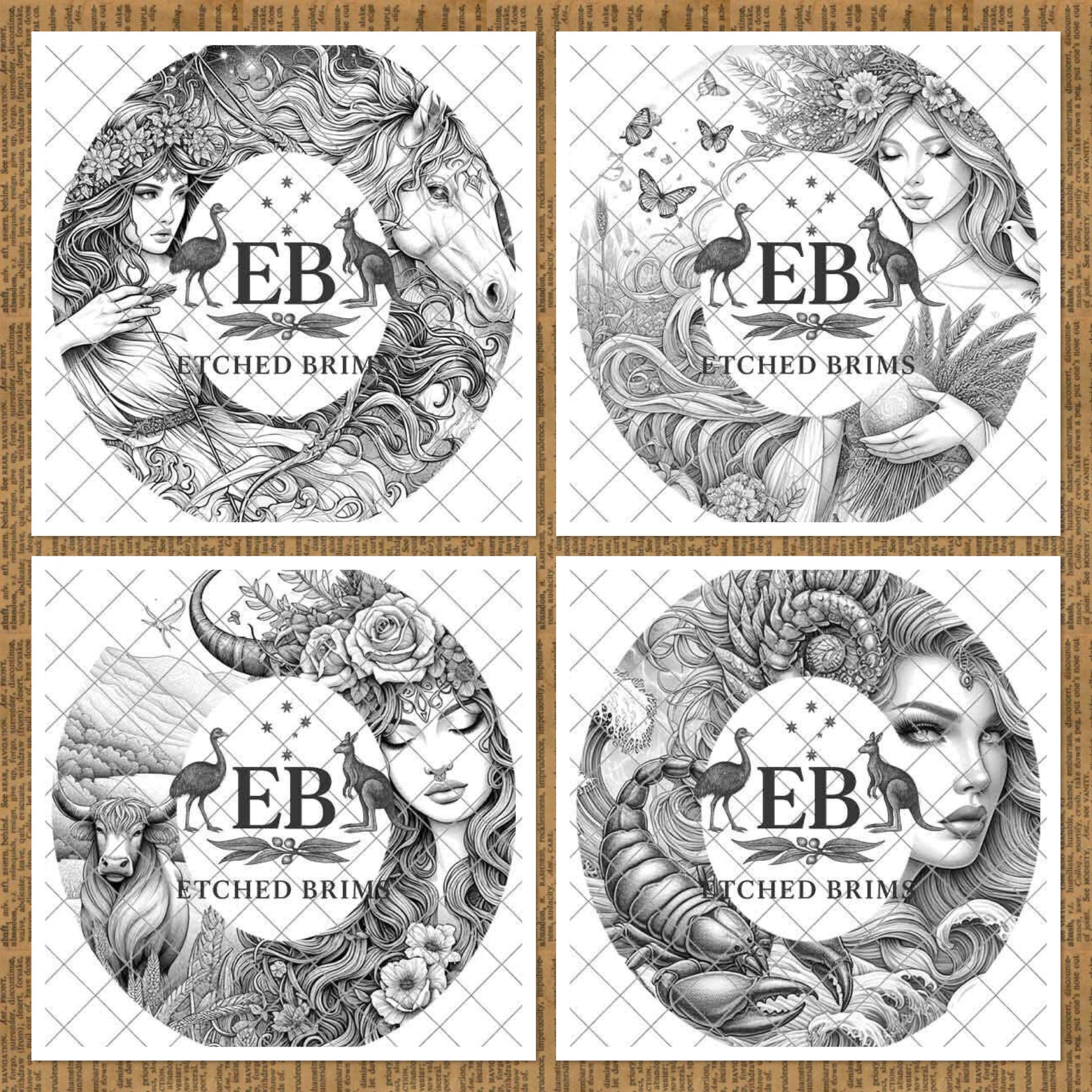 Zodiac Star Signs Hat Burning Templates Bundle. Laser Engraving Designs with PNG & Hat Hand Burning Stencils PDF. 12 Constellations EB303